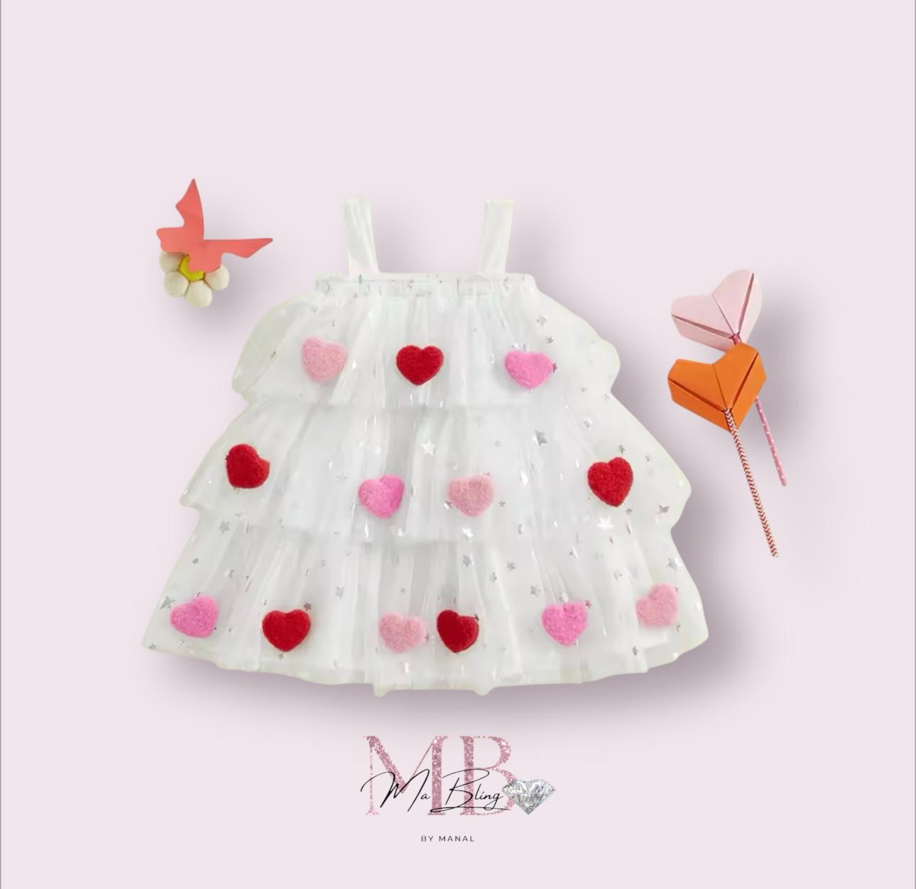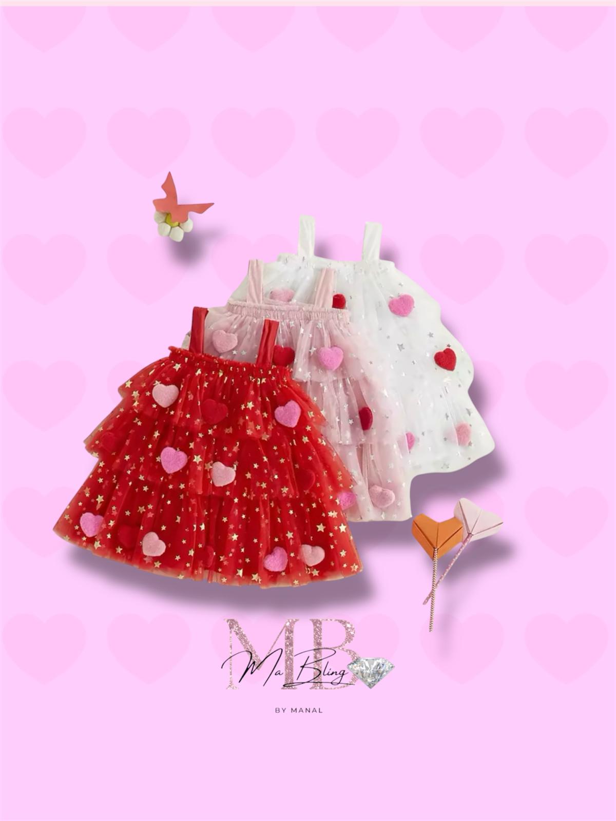Make your little one shine with this charming heart-studded tulle dress! Available in red, white, and pink, it features flowing tiers, sparkling stars, and adorable embossed hearts. Perfect for parties, photoshoots, and special occasions. A magical look for your princess! 👧✨