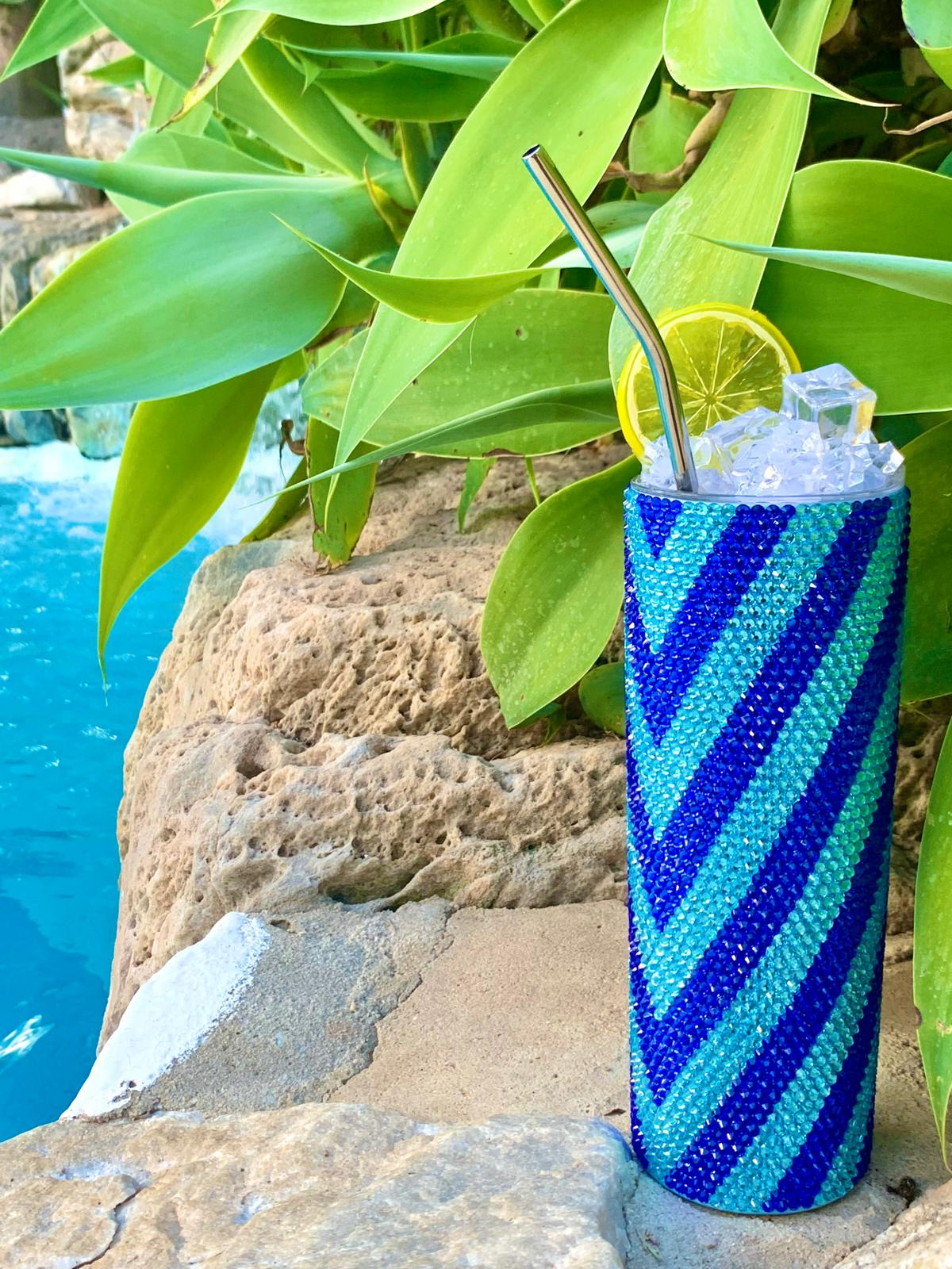 Présentation d'Ocean Glam, le gobelet en acier inoxydable de 20 oz avec couvercle hermétique, parfait pour toute occasion cet été. Avec un design bleu élégant et des détails brillants, vous vous sentirez unique et exclusif tout en dégustant vos boissons préférées. Ajoutez une touche de luxe à vos journées avec Ocean Glam.