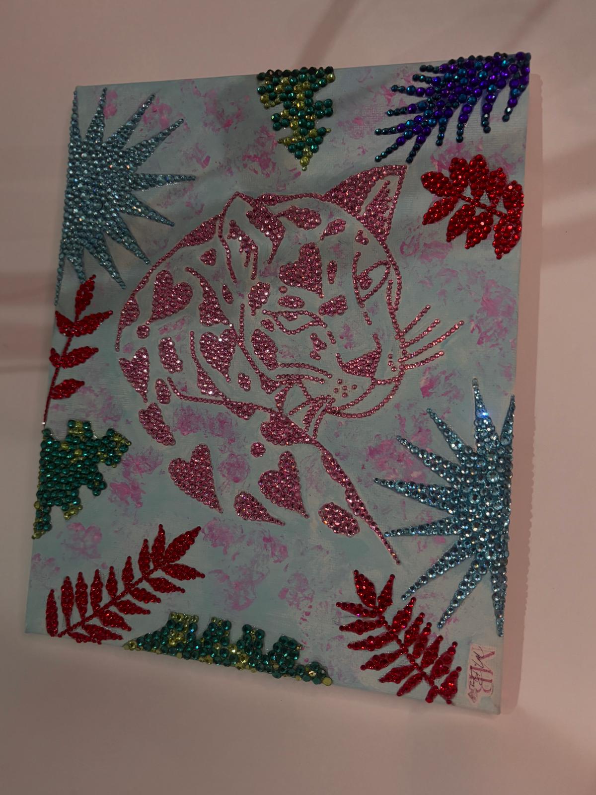 ✔️ Materiales: Lienzo, pedrería brillante, fondo en tonos pastel