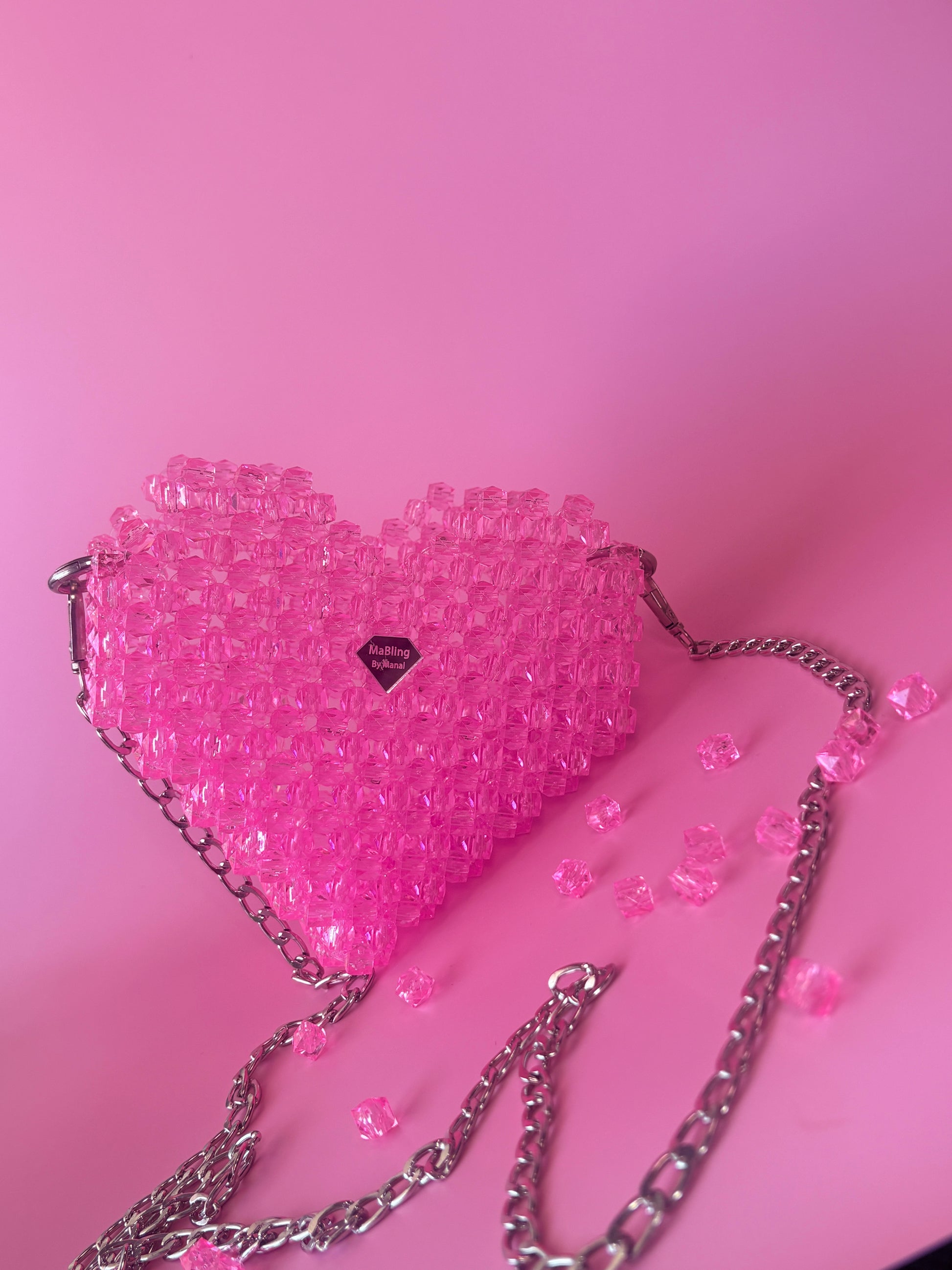 Bolso Corazón Rosa Hecho a Mano – El Accesorio Brillante que Necesitas